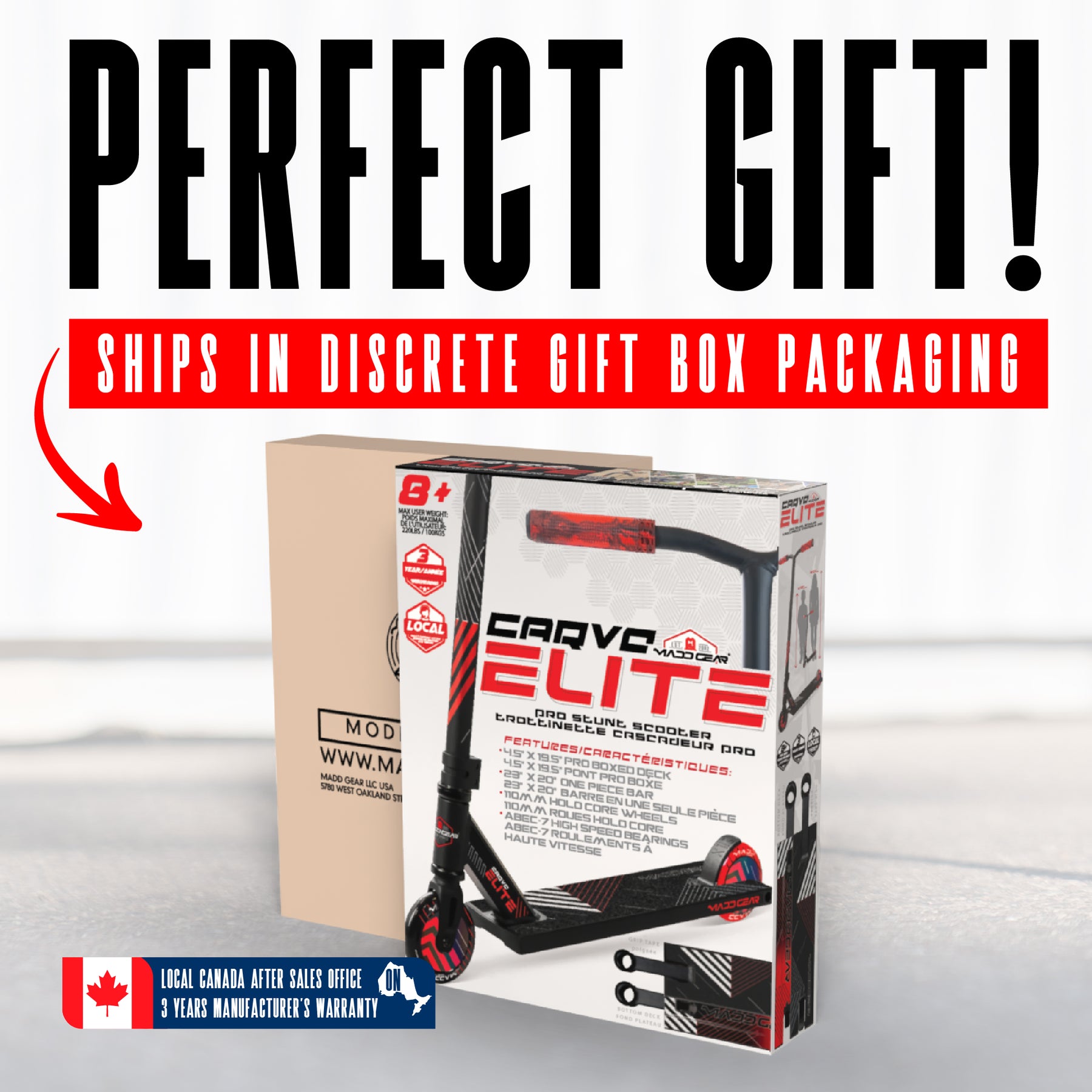 If you have any questions regarding delivery, please don’t hesitate to contact us on either 888-924-8644 or canadasupport@maddgear.com